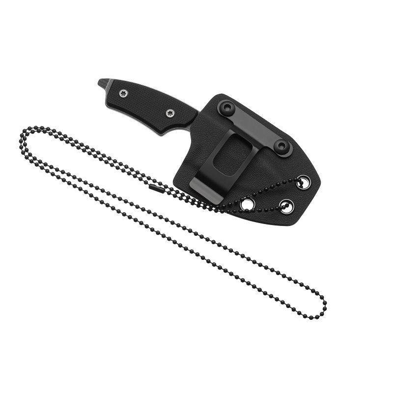 В комплект поставки входит крепкий чехол из кайдекса, фиксирующий клинок, а также удобная шариковая цепочка, хорошо знакомая владельцами по кулонам и шейным жетонам.