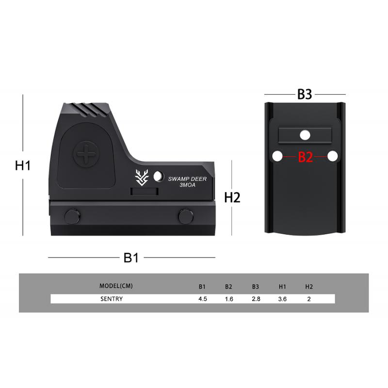 Приціл коліматорний Swamp deer SENTRY red dot — ультралегкий однократний (1х) коліматорний приціл відкритого типу, призначений для швидкого та точного прицілювання на ближніх дистанціях. Відкрита конструкція забезпечує широкий огляд і дозволяє впевнено контролювати як цілі, що рухаються, так і обстановку навколо стрілка .