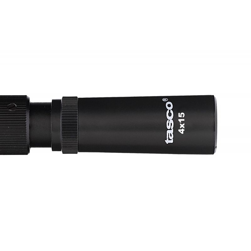 Оптичний приціл Tasco 4x15 – бюджетний оптичний приціл постійної кратності. Він сумісний із пневматикою CO2 та РСР, вогнепальною зброєю зі швидкістю кулі до 350 м/с, арбалетами. Простота і доступність цього прицілу, робить його вдалим вибором для стрільців-початківців.
